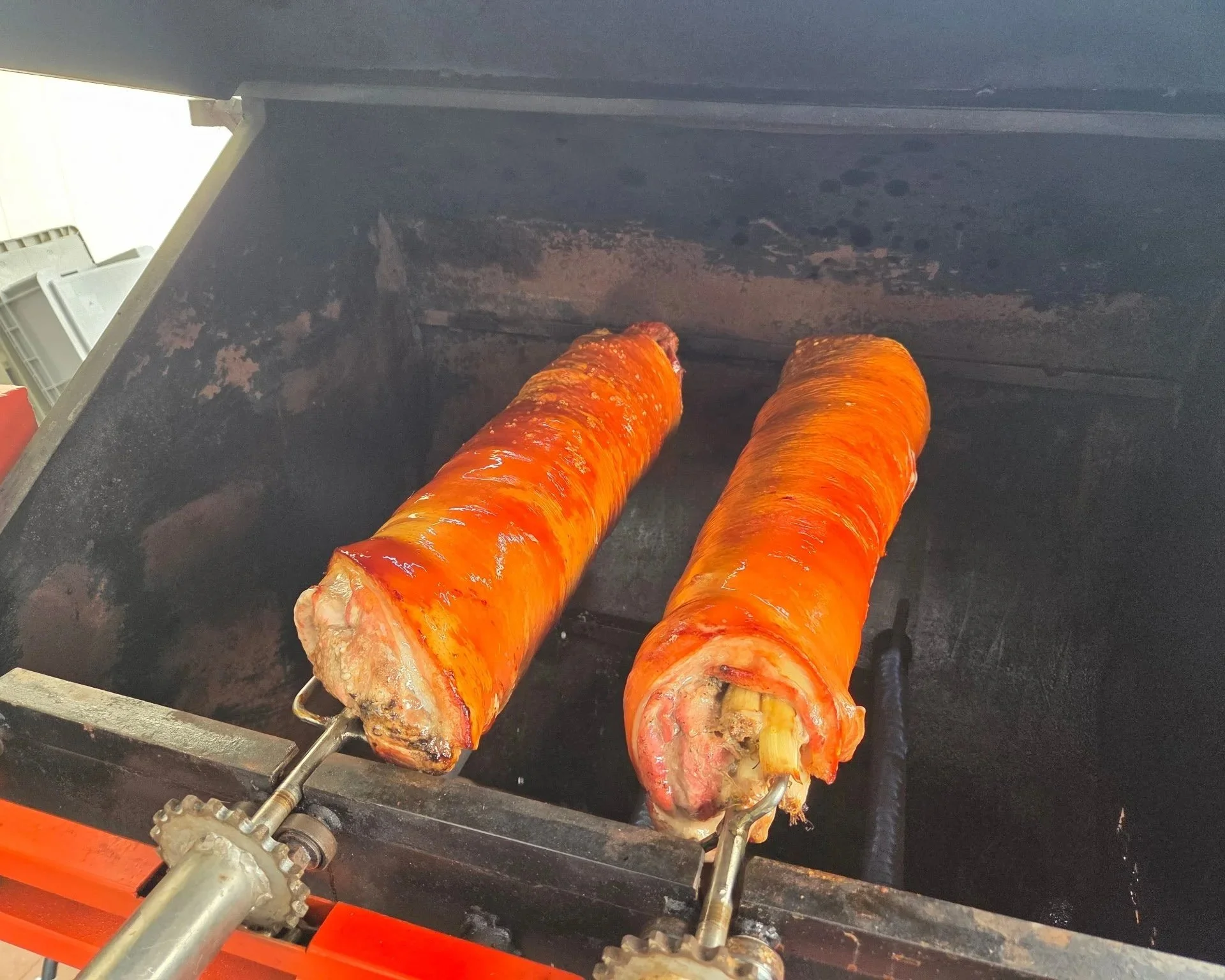 Every order is prepared fresh, seasoned with traditional herbs and spices, and roasted over an open flame for hours to achieve that signature crunch and flavor.